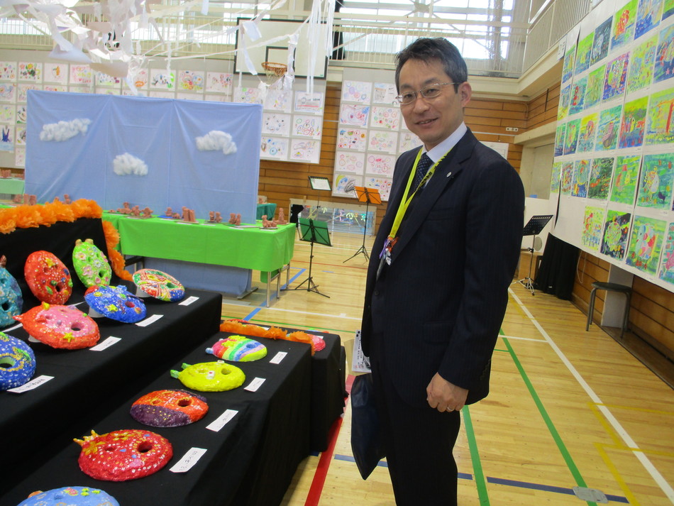 11月21日に、本校の「開校80周年記念学習発表会(作品展)」に、調布市教育委員会 栗原健教育長が来校されました。