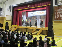 あいさつ音楽劇 2025年10月24日 あいさつは魔法のことば 東京都の出前授業であいさつ音楽劇がありました。ユーモアとストーリー性に富んだ内容に、子どもたちは笑ったり歌ったりしながら楽しんでいました。