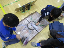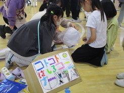 おもちゃランド 2025年12月23日 あそんで つくって くふうして 2年生の生活科の時間に作った動くおもちゃを使い、1年生と楽しむ機会をつくりました。題して「おもちゃランド」です。子どもたちは楽しく交流していました。