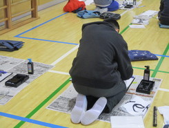 新しい年が明け、3学期毎年恒例の席書会を行いました。中・高学年の子どもたちは、体育館で学年一斉に筆をとっていました。