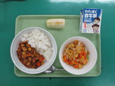 今日の献立 ・カレーライス ・オクラのねばねばサラダ ・牛乳 |