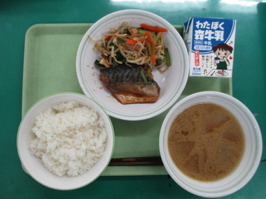 今日の献立 ・ごはん ・鯖の味噌煮 ・小松菜の和え物 ・たけのこのすまし汁 ・牛乳 |