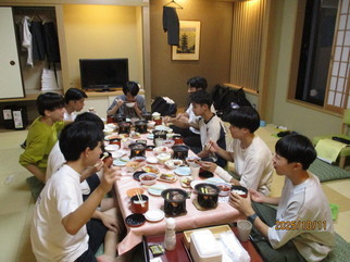 2 日目は宿舎から東大寺までバスで移動し、そこから班行動を開始しました。宿舎の御殿荘では部屋で夕食を食べました。