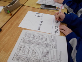 3年生 学活 2026年1月21日 本時の活動は「カレンダーをつくる」です。 卒業にむけて、カウントダウンをするカレンダーを作成しました。受験(受検)に取り組む日々ですが、その中で卒業までの日数を確認し、ともに過ごせる日々の大切さを改めて認識している様子が見られました。