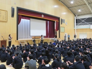 月1回、地域の方々に挨拶をしながら学校周辺のゴミ拾いを行う、生徒会主催のボランティア活動「グリーンハロープロジェクト」が行われました。