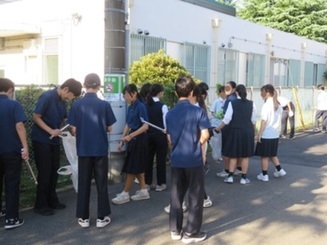 グリーンハロープロジェクト(9月) 2025年9月26日(金) 月1回、地域の方々に挨拶をしながら学校周辺のゴミ拾いを行う、生徒会主催のボランティア活動「グリーンハロープロジェクト」が行われました。 生徒会長の挨拶に始まり、早朝から多くの生徒が地域の清掃活動にいそしんでいました。