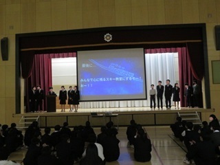 スキー移動教室ガイダンス(1年) 2025年12月1日(月) 2月のスキー教室に向けて、生徒実行委員が中心となってガイダンスを行いました。 実行委員が事前に作成したステキなスライド資料をもとにした説明を、みんな真剣に聞き入っていました。 学年としても成功させようとする意欲が高まっていました。