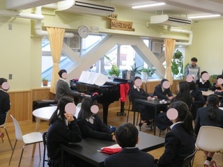 ストリートピアノDAY 2025年12月17日(水) 昼休みにグランドピアノを解放し、自由に弾けるイベントを実施しました。 100人近くの生徒が集まる中、ディズニーの曲を披露したり、クリスマスにちなんだ曲を参加者全員で歌ったりしました。中には引き語りで美声を響かせた生徒もおり、一体感のある楽しい会となりました。