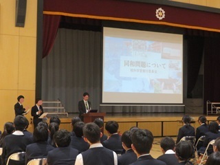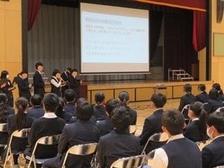 校外学習事後学習発表会(2年) 2025年12月19日(金) 都内めぐりの校外学習の事後学習として、学年でまとめの発表会を行いました。 歴史的な出来事、文化、環境、政治経済、国際の5つのテーマについて、クラスをまたいだグループで立てた仮説をもとに都内巡りで実際に確認し、まとめた内容をグループごとに発表しました。 最後は実行委員グループがまとめた「同和問題」についてのスライド発表も行われ、東京という場所について、そして人権問題としてお互いにより深く学ぶ機会となりました。