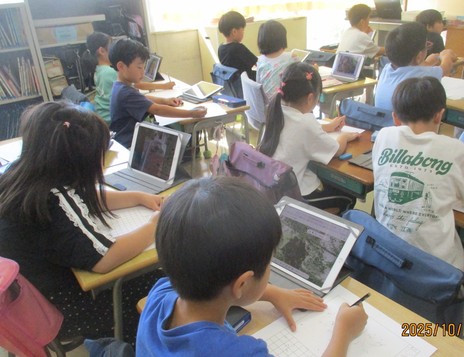 植物や生き物、学校の施設など自分が撮った写真を使って