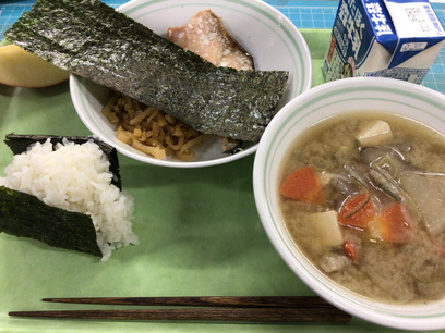セルフおにぎり 鮭の塩焼き 炒めたくあん