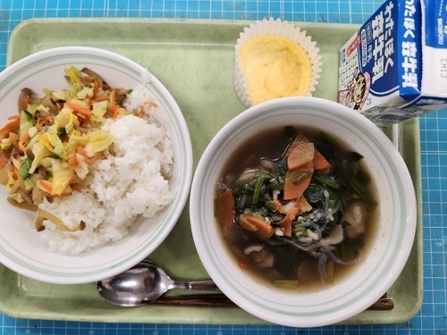 青菜とわかめのレモン醤油 果物(みかん)