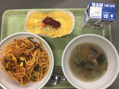 5月27日 スパゲッティーナポリタン キャベツとベーコンのスープ