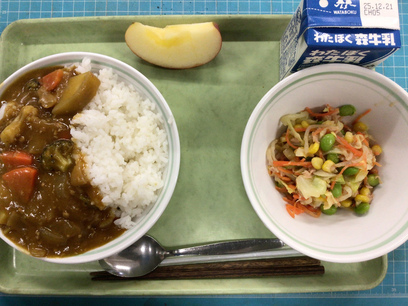 5月23日 カツカレーライス ガルバンゾーサラダ