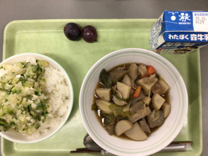 4月25日 わかめごはん たこコロッケ けんちんじる