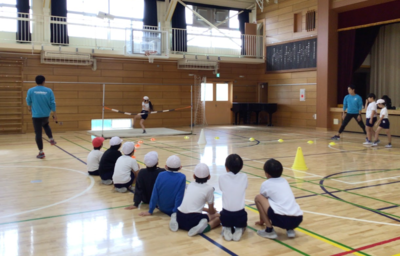 4年走り高跳び出前授業 2025年11月6日 出前授業をしていただきました。 【ゆめおり陸上クラブ】のコーチが来校し、走り高とびの授業をしてくださいました。 リズムよくとぶこと、助走の取り方、足のあげ方…、コツをたくさん教わりました。 今日の学習を生かして、これから練習を頑張ります! 担当