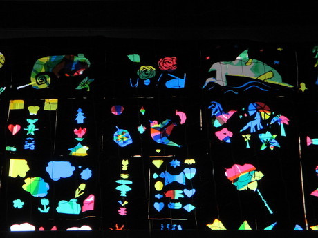 飾られた「ステンドグラス」に気付いた子どもたちから、感嘆の声が上がりました。