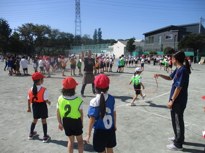 8の字跳びで連続跳びができるように挑戦する3,4年生。