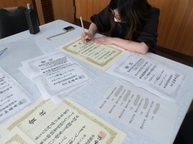 賞状を書いてくれています