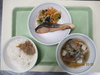 9/4 ごはん なめたけ ぶりの照り焼き 野菜の梅和え とり鍋汁 |