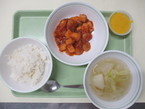 9/10 ごはん えびと豆腐のチリソース 冬瓜のスープ マンゴープリン