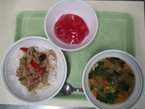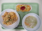 9/2 鮭レタスチャーハン 野菜チップ ビーフンスープ