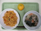 9/16 豚キムチやきそば わかめとトックのスープ みかん |