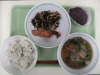 9/22 わかめごはん 鮭の香り焼き ひじきのサラダ のっぺい汁 一口おはぎ |