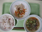 10/7 カリカリ梅じゃこごはん 花しゅうまい 白菜のおかかあえ 五目中華スープ |