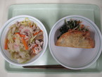 10/2 和風カレーうどん 野菜ののりあえ とりの天ぷら |