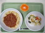 10/24 生パスタの豚肉ラグーソース マセドアンサラダ 菊花みかん |