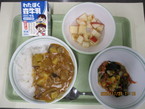 11/21 木島平村のきのこカレー コーンサラダ 木島平村のりんごポンチ |