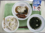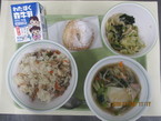 【開校記念日】 菜飯 とりのからあげ 小松菜の梅和え お祝いすまし汁