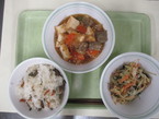 1/14 ひるぜんおこわ 肉じゃがのそぼろ煮 野菜のごま酢あえ |