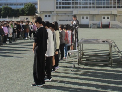 全校朝会(表彰 あいさつ運動 各クラスの目標発表)