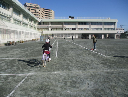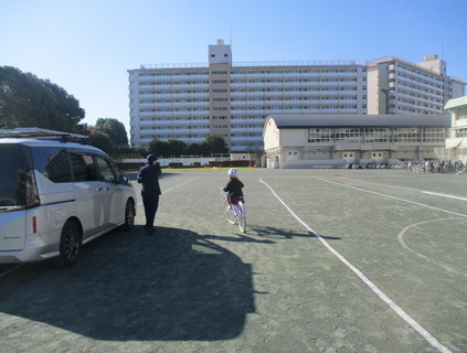 また、調布警察署の方や保護者の皆様にもご協力いただき、安全な乗り方について動画を視聴したり、実技練習を行ったりしました。発車前の「右・左・右後ろ」の確認、横断歩道の正しい渡り方、道路標識を確かめてからの一時停止など、一つ一つポイントを意識しながら慎重に走行する姿が見られました。