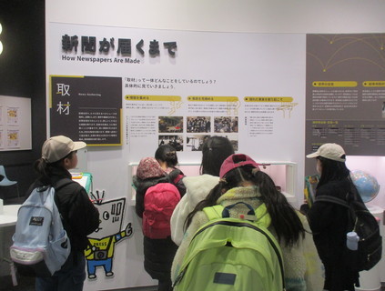 はじめに、ニュースパーク(日本新聞博物館) を訪れ、新聞がどのように作られ、私たちのもとに届けられているのかについて、展示や映像を通して学びました。取材や編集の工夫、見出しの役割などに触れ、社会科で学習してきた内容と結び付けながら捉える機会となりました。