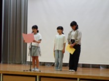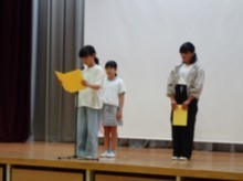 2学期始業式 2025年9月1日 2学期が始まりました。 みんな夏休みを過ごし,一回り成長した姿を見せてくれました。 校長先生からは,2学期のさまざまな行事を一つ一つチャレンジしてみようという話がありました。 校長先生が,「夏休みにチャレンジしたこと」として養護の先生と手作りした,絵本のペープサートを披露してくれました。 児童代表の言葉は5年生。3名の児童が発表しました。 長く,行事が盛りだくさんな2学期,みんなで元気に過ごしましょう。