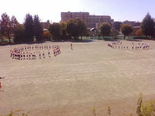 4年生は青空の下、縄跳びに取り組んでいます。