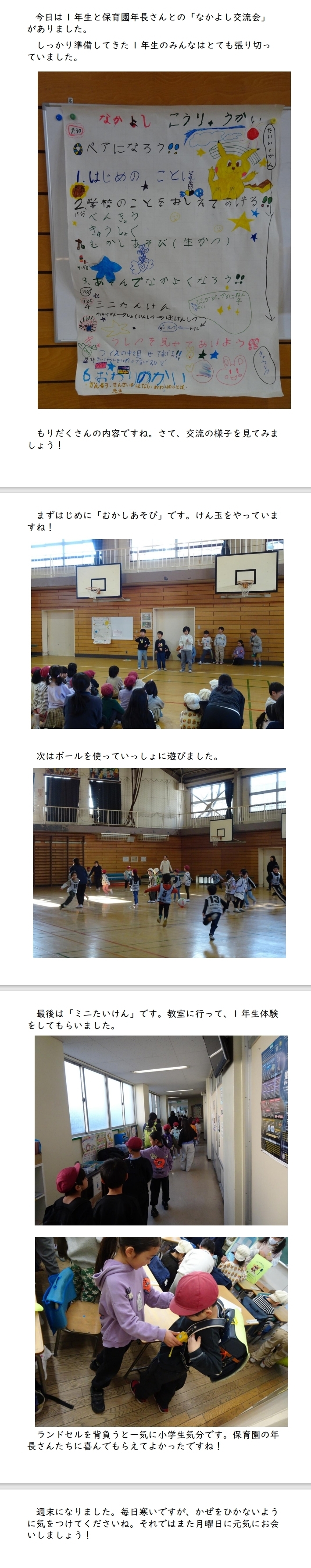 「1年生 保育園との交流会」