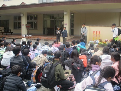 (5年生)八ヶ岳移動教室③ 令和7年10月20日 自然体験の後は、清泉寮の広場で昼食をとりました。 昼食後は、清泉寮のおいしいソフトクリームを食べて、広い牧場を眺めて自然を満喫しました。 その後、3日間お世話になる八ヶ岳少年自然の家の入口で開校式を行いました。 子どもたちは自分の係の役割を自覚しながら協力して過ごしています。