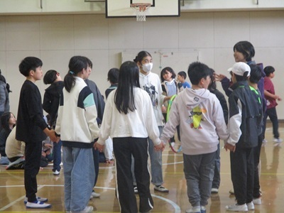 (5年生)八ヶ岳移動教室2日目③ 令和7年10月21日 午前中の活動が終了したところで、宿舎に戻り、昼食をとって午後は屋内でプロジェクトアドベンチャーを行いました。 チームで協力して、頭を働かせ、体を動かし、何度も挑戦しながら活動しました。学校生活をよりよくするには。自分たちでよりよい関係を築いていくことが大切だということを学びました。
