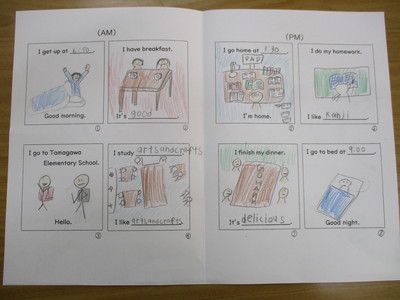 4年生 外国語活動 This is my day. 香港の小学生に贈ろう! 令和7年12月15日 「This is my day.」では、自分たちの一日の生活を、絵や簡単な英語で表しました。 今年度、香港のTai Po Old Market Public Schoolと手紙を通じて交流できることになり、これらにメッセージも添えて、送ります。 一人一人、素敵なものに仕上げました。 Very Christmassy🎄