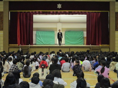 校長先生のお話の後、2年生の2学期のふりかえりと3学期の抱負が代表児童から発表されました。