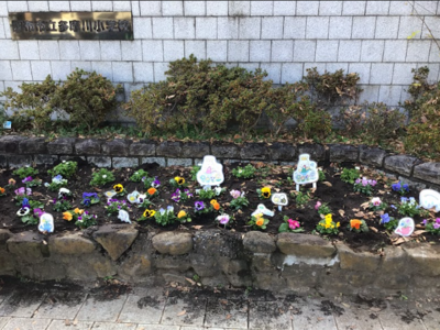 栽培委員会とPTAの花いっぱいの活動のみなさんで正門の花壇に新しい花を植えました。
