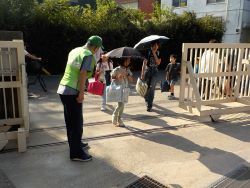 2学期の登校、始業式の様子です。