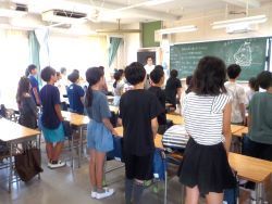 始業式は暑さ対策のために各教室で行いました。