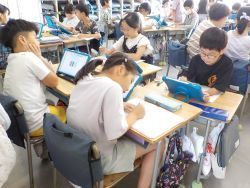 みんなは、「なんだろう?」「あ!わかった」 など、様々な声があがりました。そして、タブレットに答えを書き込んでいきました。