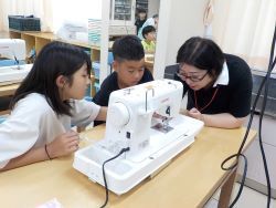 5年生の家庭科では、ミシンを使って生活に生かすことを目指して学習しています。