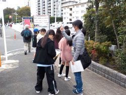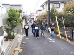 グループごとに歩いて学習するので、安全のために保護者の方々がボランティアとして付き添ってくださいました。